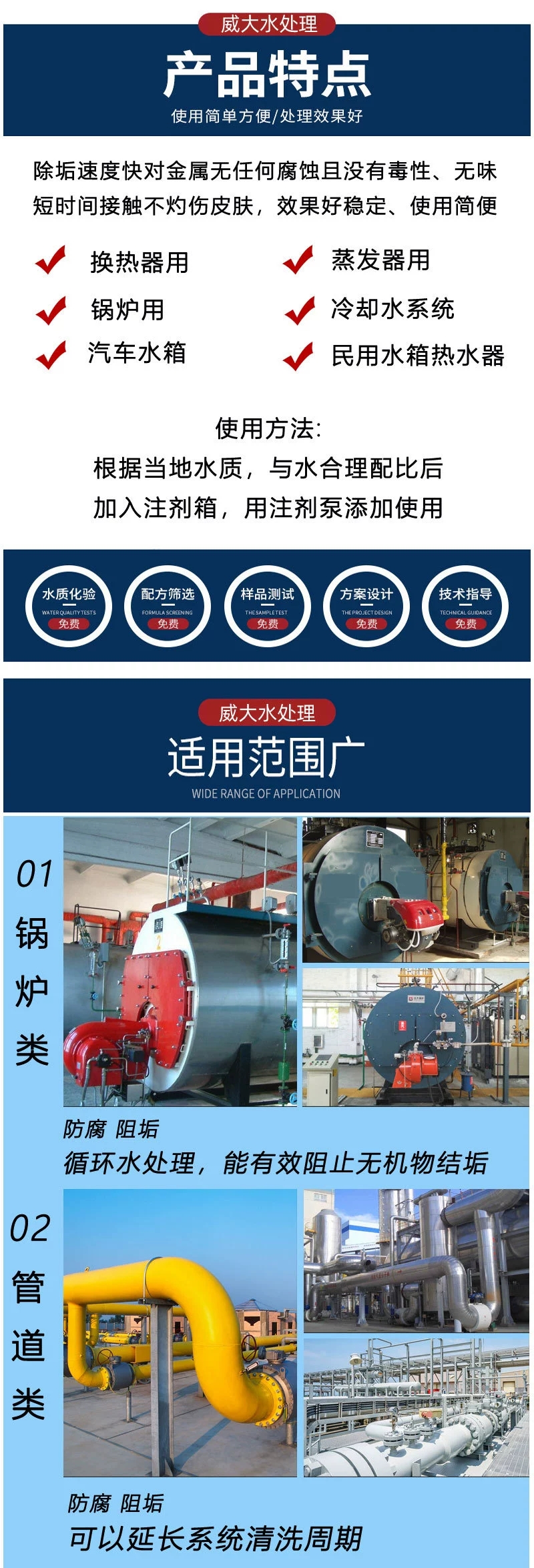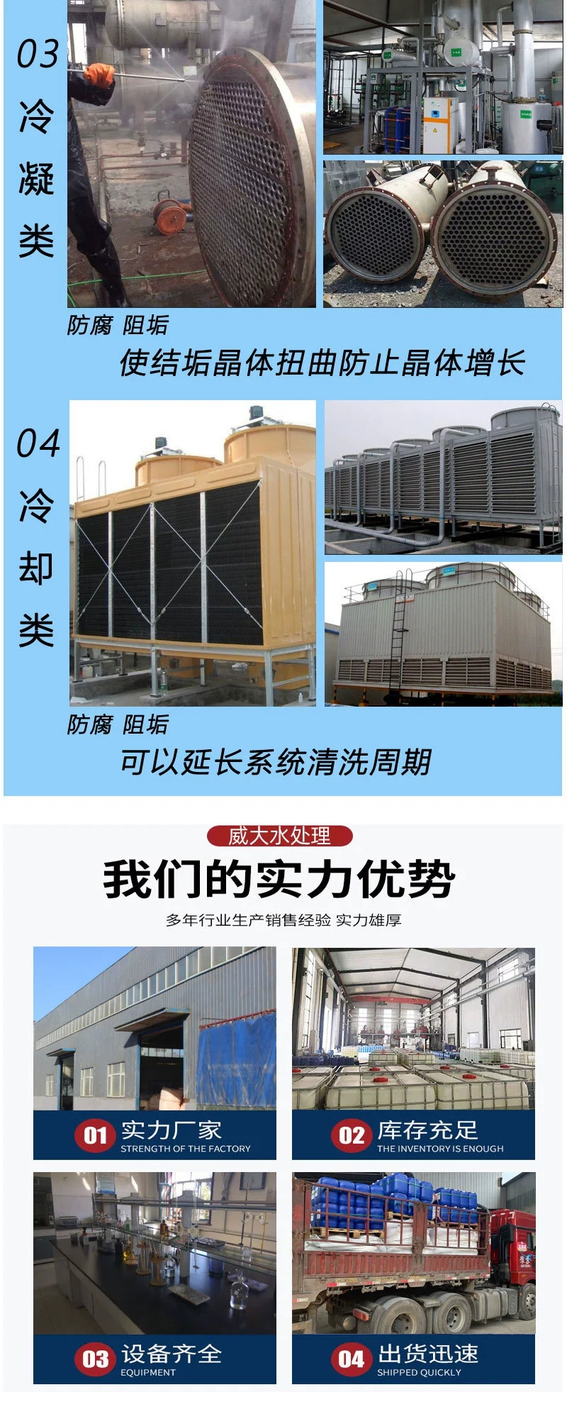 與君相遇絕非偶然,20年專注產品生產,11年電商經驗,終于在眾多廠家中脫穎而出, 鄭州威大水處理材料有限公司是一家集科研、生產銷售阻垢劑、殺菌劑、水處理藥劑等產品代加工為主導的企業。 公司有反應釜攪拌灌裝生產線,可為各企業提供貼牌加工各種藥劑產品! 水處理藥劑代加工,循環水阻垢緩蝕劑、反滲透阻垢、分散劑、非氧化殺菌劑。我們主要代加工阻垢緩蝕劑,清洗除垢劑,殺菌滅藻劑,黏泥剝離劑,反滲透的阻垢分散劑,非氧化殺菌劑,清洗劑,還原劑,活性炭,聚丙烯酰胺,聚合氯化鋁等水處理藥劑,品類齊全。本廠技術力量雄厚、設備精良、工藝先進,產品多次受到新老客戶的一致好評。